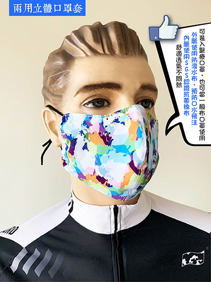 口罩套也可以客製化!!! 2020-03-23 增加醫療口罩壽命 可設計專屬於您的圖案與文字 自用、送禮、廣告宣傳 除了一般平面口罩套,亦有兩用立體口罩套可選擇 外層使用防潑水布,有效隔絕外來飛沫 內層使用SGS認證抗菌棉布 回新聞列表